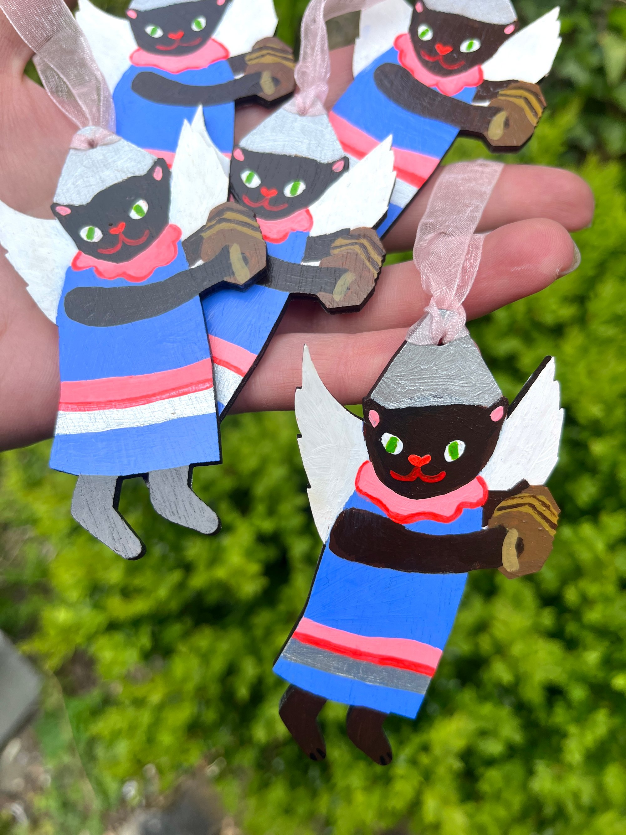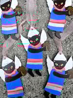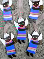 Marra is a lil angel who will play you sweet songs on her squeezebox from her place on your tree, wall, or wherever you choose to hang her. These decorations are made in very small quantities, Marra being an edition of only five.